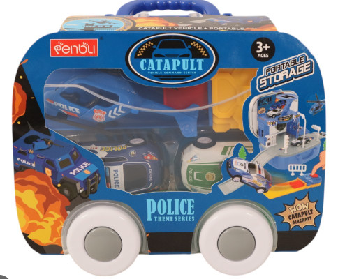Juego de policía en malétin c/rueda y coches de juguete dentro